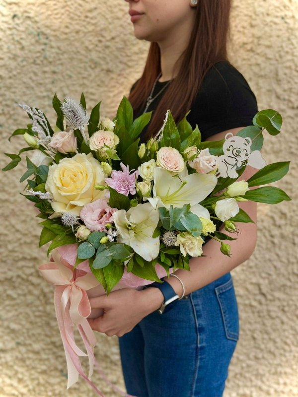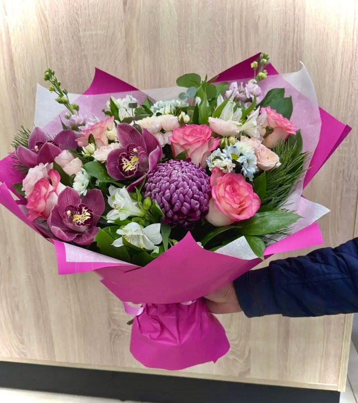 Созданные флористами букеты приятно как дарить, так и получать. По телефону, указанному на странице, вы сможете задать все интересующие вопросы, рассказать, какой должна быть композиция, и оформить заказ на доставку или самовывоз к нужному времени.
